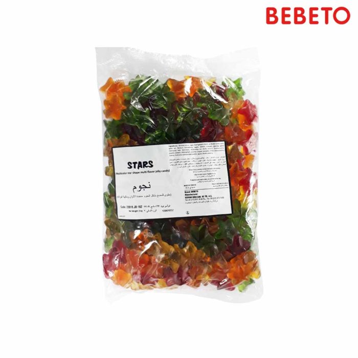 Ingredients: glucose syrup, sugar, beef gelatin (halal), acidulant (citric acid (E330)), palm oil, flavors (strawberry, apple, lemon, orange), glazing agents (carnauba wax (E901), bees wax (E903)), depending on items colors (anthocyanins, paprika extract, chlorophylls and the copper complex of the chlorophyllins, lutein), fruit juice concentrate (radish, apple, blackcurrants).