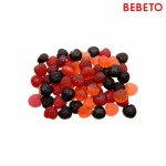 Ingredients: glucose syrup, sugar, beef gelatin (halal), acidulant (citric acid (E330)), palm oil, flavors (strawberry, apple, lemon, orange), glazing agents (carnauba wax (E903), bees wax (E901)), natural colours (anthocyanins, paprika extract, chlorophylls and the copper complex of the chlorophyllins, lutein), fruit juice concentrate (radish, apple, blackcurrants).